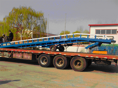 沙特客戶訂做移動式登車橋發(fā)貨??蛻暨x訂的帶支腿式移動式10T登車橋